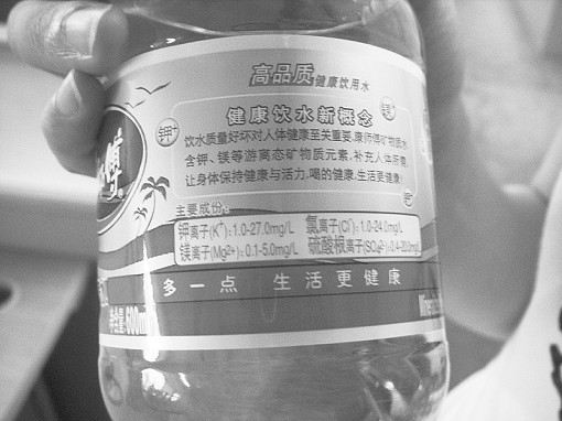 而另一食品巨頭統一的礦物質飲用水標簽亦存在問題,標簽將鉀、鈣、鋅均稱為微量元素。李先生說:“人體營養學中,只有鋅被稱為微量元素,鉀、鈣均為人體必需的‘常量元素’,或稱‘宏量元素’。”
