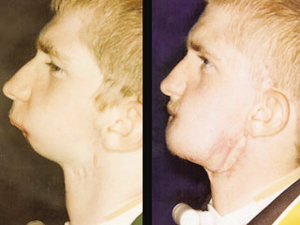 愛爾蘭少年艾倫·多爾蒂今年18歲,他患有一種罕見先天畸形,生來沒有下巴。從去年開始,多爾蒂做了多次手術。美國媒體27日報道,紐約的醫生本星期為他做了最后一次手術,完成了為他制造下巴的艱巨工程。