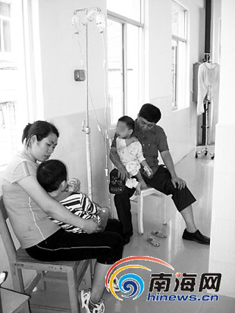 隨后,記者迅速驅(qū)車趕往五指山市采訪。在海南省第二人民醫(yī)院傳染科手足口病隔離區(qū)的病房里,記者見到了報料人王先生和他正在輸液治療的兒子。3歲的小王長得十分可愛,可是他的手掌上、腳上和口腔中卻長出了不少膿點(diǎn)。