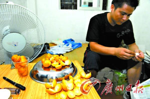 剝開(kāi)金橘,可以清楚地看到蠕動(dòng)的蛆蟲(chóng)。 馮昕攝