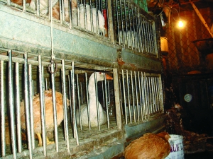 昨日記者在現(xiàn)場看到,籠中約有8只雞和1只鵝,發(fā)出“咯咯”的叫聲。