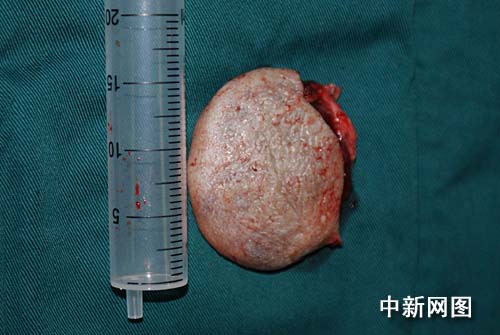 4月1日,專家們為松松實施了手術。在3個多小時的手術中,醫生們小心翼翼地一點點將腫塊剝離、切除。術中,專家們發現,這個“鴨蛋”為后枕部巨大海綿狀血管瘤,并且已經嚴重侵犯到松松后腦的皮膚、皮下和肌肉組織。所幸手術及時、成功,不然隨著松松年齡的增長,血管瘤還會對患兒造成更大傷害。