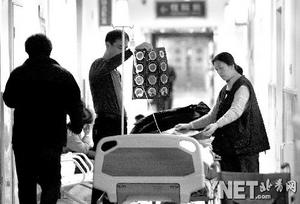 記者看到,急診科搶救室里里外外都躺著病人。病床上大多是滿臉憔悴的老年患者,他們被各種搶救儀器和親屬、子女們包圍著。而搶救室外的樓道里,還有四五位病人躺在臨時(shí)病床上輸液。此外,觀察室和監(jiān)護(hù)室外的樓道里也被加床患者擠滿了。“搶救室、觀察室、監(jiān)護(hù)室里連加床全都住滿了,”急診科值班大夫李南告訴記者,“我們實(shí)在沒(méi)辦法,只能在樓道里加床。”可是另外一個(gè)問(wèn)題又出現(xiàn)了,呼吸機(jī)、監(jiān)護(hù)儀都不夠用,患者用平車也被占滿了,一些重病號(hào)只能先坐著輸液。據(jù)了解,這些不得不在醫(yī)院里過(guò)年的患者主要是心腦血管病人和呼吸系統(tǒng)病人。