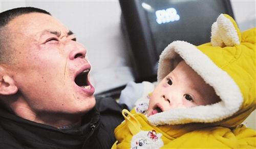 昨日(1月20日)下午,從彭州趕到成都的范冉和妻子廖繼軒來到成都市兒童醫(yī)院重癥監(jiān)護(hù)室,看望兒子范瑞。10個(gè)月大的范瑞在兒童醫(yī)院已經(jīng)住了3個(gè)多月,范瑞不僅臉色蒼白,還目光呆滯,因?yàn)樗侵钦蟽海⑶疫患有嚴(yán)重的先天性心臟病。據(jù)悉,范瑞原本住在成都市某醫(yī)院,但因?yàn)?個(gè)月前病危,被那家醫(yī)院轉(zhuǎn)送到成都市兒童醫(yī)院,直到現(xiàn)在。