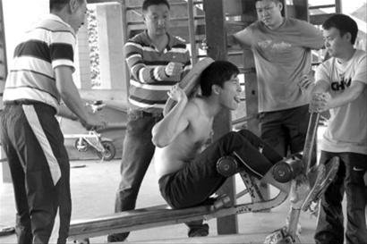 而劉翔的熱身也是慢跑和牽拉,這是他抵達廣州后的第一堂訓練課,師傅孫海平安排的內容是調整訓練,練力量。幾組雙臂單舉后,劉翔已經汗流浹背,于是他干脆脫下了上身的T恤。 “昨天在上海還很冷,現在已經熱得我想喝冰水了。 ”接著,劉翔又仰臥在訓練器材上,進行負重式仰臥起坐,做了三組再換花樣。因為器材不順手,劉翔的手還磨破了,基地一位教練過來問好,順便關心劉翔現在的手推力量可以達到多少。 “120多公斤吧,現在也差不多。”孫海平答道。沒想到劉翔有意見了:“哪止啊,最高的時候可以到130公斤,師傅,你忘記了啊?其實啊,不一定是推得多就說明什么,關鍵是力量用得到就行了……”
