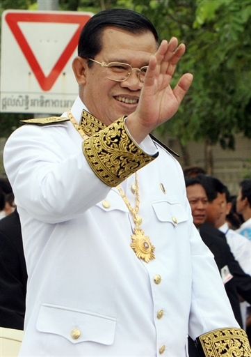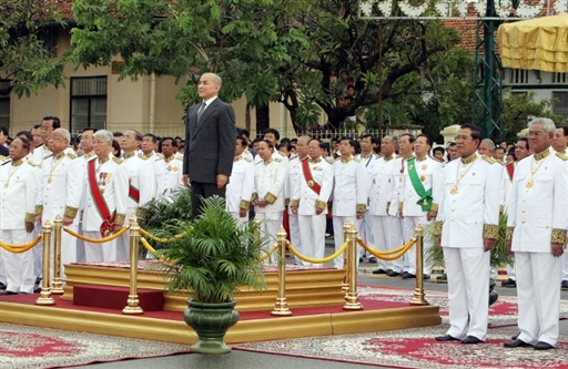 柬埔寨首相洪森西哈莫尼在首都金邊出席獨立節慶祝活動。