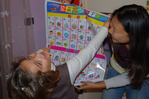 11月初我受邀來到馬爾蒂娜家里時,她正在寫作業,我在門外就聽到她嘴里還叨咕著乘法口訣。她做完了作業,我問她用筷子技巧是否有進步,她拉著我到廚房表演起來。為了表示對她進步的肯定和鼓勵,我送給她一本《漢語拼音趣味圖案冊》,并告訴她可以按照這些生動有趣的拼音圖案開始正式學習漢語。她手捧著禮物,深深地回送給我一個吻,這是意大利最傳統的表示問候或感謝的禮儀。