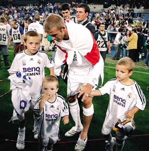 爸爸小貝在皇馬的最后一站,三個(gè)兒子都來捧場(chǎng)