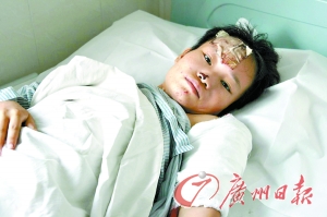 10月24日,楊某從6樓摔下已經6天了,此時的她才完全清醒過來。記者見到她時,她正躺在醫院病床上接受治療。她的頭部、左手臂、左腳都綁著紗布,因傷勢很重,動彈不得。得知記者前來采訪,一身傷痕的她,欲言又止,但她的眼神里似乎充滿了恨與無奈。