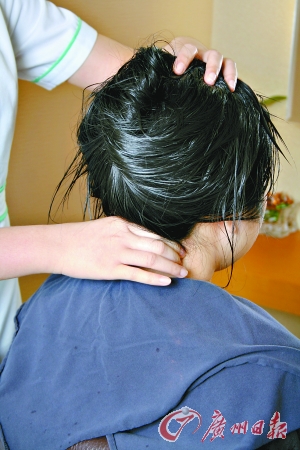 上藥水和上機(jī)前進(jìn)行頸部按摩