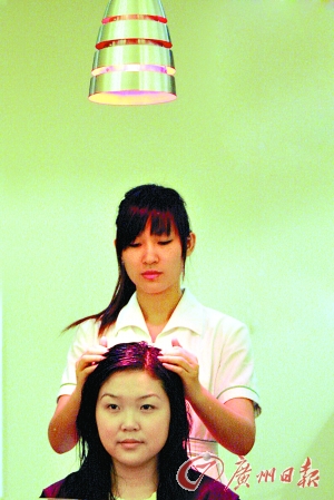 紅外線(xiàn)燈殺菌排毒。紅外線(xiàn)燈能產(chǎn)生熱力使頭蓋保持暖和柔軟,使藥水的治療和營(yíng)養(yǎng)成分更易吸收,同時(shí)能殺菌、減少毒素及有害物資對(duì)頭皮、頭發(fā)的損害。在上完藥水后一邊照燈一邊進(jìn)行頭部按摩,可放松緊繃的頭蓋,使配方更易滲透。