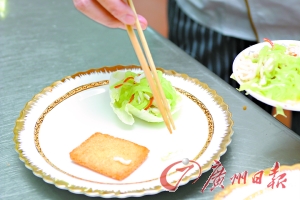 6. 用包心菜剪成小圓兜并放上配菜(或沙拉),然后把“翅蝦”放在烤過的面包片上即可。 (文/吳婉虹 圖/司徒健)