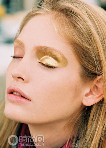主題描述:光澤,向來是提升彩妝高級感的重要手段,本季用復古的蜂蜜金作為新妝的主流色彩,奇妙的光暈給肌膚蒙上一層金色的光澤,令人迷醉。而從印度富饒熾熱的紅土地與華麗絲綢色調中獲得靈感,運用黑亮瑪瑙色、閃耀的金色、明亮的棕色,這款充滿寶石與絲緞光澤的異域風情妝容也是秋冬妝容的主要方向標。