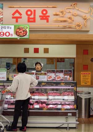韓國(guó)大型超市開(kāi)始出售美國(guó)進(jìn)口牛肉(圖)