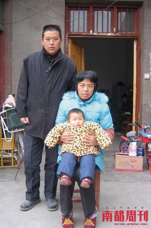 1歲的張子涵和爺爺、奶奶在一貧如洗的家中。他是第一例被徐州市兒童醫院確診的奶粉結石寶寶