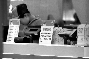 一個月來,西單大悅城一些商戶拒收HD、HB開頭的百元鈔票,有商鋪還在收銀臺擺放拒收告示,引起市民不滿。昨日,大悅城管理部門表示,如遇市民投訴,將要求商戶整改,接收相關編號的真鈔。