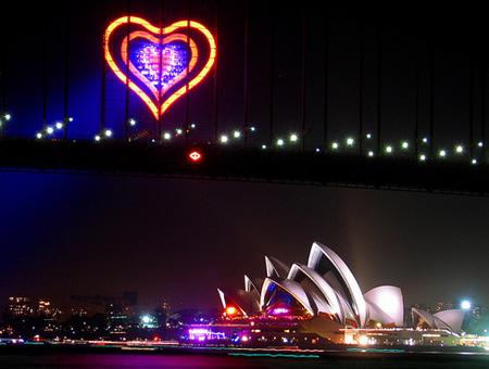 浪漫的心型燈光點(diǎn)亮悉尼港灣。