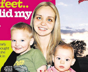 2005年10月9日,時年21歲的美國姑娘莎娜·里查森在阿肯色州高空跳傘時,因主副降落傘都無法打開,她就像秤砣一樣從3000多米高空墜落地面。臉先著地的莎娜奇跡般地沒有摔死,就連腹中2周大的胎兒也安然無恙!孩子安然出生后6周,莎娜便重返藍(lán)天再次跳傘。3年后,莎娜又增添了一個寶寶,并于去年12月通過第6次整容手術(shù)重獲了“新臉”。