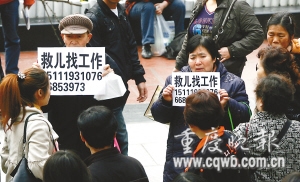 昨上午,三峽廣場新世紀門口,一對頭發花白的老人手舉“為救兒,跪求一份工作”的牌子,引來不少市民圍觀。夫婦倆男的叫余柏容,67歲,豐都縣崇興鄉春花村4組人,妻子湛正芳,65歲。余柏容說,兒子余雷今年27歲,之前在井口民豐化工廠當工人,老兩口和兒子、兒媳、孫兒一起擠住在井口先鋒街租賃房。去年,該廠搬遷到潼南,余雷夫妻隨工廠去了潼南。