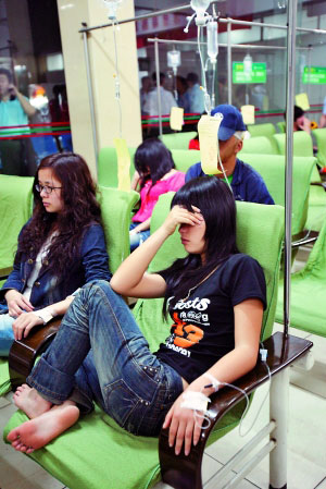 據(jù)了解,中毒的14人為老鄉(xiāng)關(guān)系,均來自福建閩中,部分人已在廣州工作多年,其中有不少穿著打扮時髦的靚女。事發(fā)時為下午16時許,當(dāng)時大家一起在粵墾路一位名叫耿宗文的人家中聚餐。正在打點滴的耿宗文對記者說:“我們聚餐共有14人,主要是慶祝金融危機下新來的老鄉(xiāng)找到工作。當(dāng)時大家為了節(jié)約成本,就由我的一名親戚去附近一家農(nóng)貿(mào)市場買菜,然后來我家做飯,本來吃得很高興,沒想到吃完不到10分鐘,就全部開始出現(xiàn)腹瀉、頭暈癥狀,隨后大家集體搶廁所,我們隨后打電話給110求救。”據(jù)了解,當(dāng)時吃完飯大概在17時許,吃的飯菜有酸菜魚、豆腐、豬肝、芹菜、西紅柿蛋湯、咸魚、蝦干、米飯。“這些菜吃的時候沒有任何異味,不知道是哪道菜出了問題。”旁邊正在嘔吐的鄧先英對記者說。
