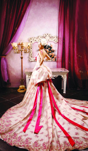 米蘭婚紗攝影的婚紗陳列區有上百件多彩炫目的婚紗、禮服,要從這么多件婚紗里選出幾件適合自己的,還真要有點耐心!米蘭負責人告訴記者,先要搞清自己適合穿哪種材質婚紗。婚紗的材質有很多種,比如全真絲高貴典雅;雪紡材質清爽涼快;洋緞面高貴大方;蕾絲材質,是作為裝飾及點綴之用;塔府綢,輕身而滑溜,給人輕盈的感覺。如果你屬于可愛型,可以選擇蕾絲設計較多的款式;如果你的氣質適合高貴典雅的風格,就選擇洋緞面婚紗,因為它很“抬人”!