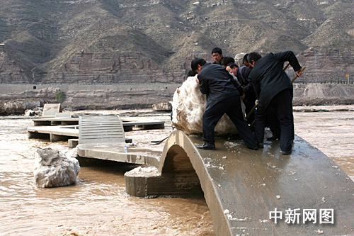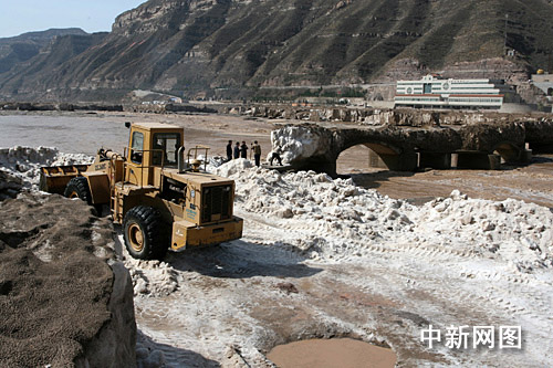 為早日使景區開放,在一年一度桃花訊來臨后,河道的冰塊被洪水沖刷的所剩無幾,加之天氣漸漸變暖,使景區道路冰塊融化,壺口管委會決定采取機械與人工清理冰塊的辦法,及時組織景區干部職工和景區群眾配合機械對冰塊進行清理。