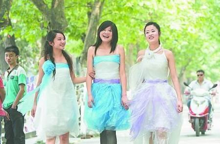 昨日中午,成都理工大學(xué)第四教學(xué)樓旁擺起了展臺,七名身著用藍(lán)、黑、白相間的塑料薄膜做成的“塑料時裝”的女學(xué)生登場,引來了陣陣掌聲。據(jù)介紹,這些學(xué)生所穿的“塑料時裝”全部采用日常生活中常見的塑料,通過他們自己獨立設(shè)計成衣服,向現(xiàn)場的觀眾宣傳環(huán)保,號召師生們盡量采用環(huán)保制品,愛護(hù)我們共同的家園。(張歐)