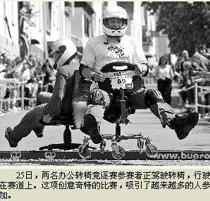 辦公轉椅競逐賽在瑞士誕生,巴特柯尼希鎮一家青年俱樂部的成員將這項趣味運動略加變通后,于去年在鎮上舉辦了首屆比賽。引得世界各地的媒體競相報道。