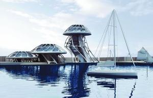 而其中最值得一說的無疑是形似水母的南美風情酒店。水母?榕樹?蘑菇?美國著名建筑設計師、有機城市倡導者邁克爾·索金在網上曝光的幾張新銳建筑設計圖吸引了不少的注意力。圖片顯示,廣袤天空下,一座建筑在若干飄逸的“裙帶”支撐下矗立在藍色水面上,宛如一個浮出水面的巨型水母,具有強烈的視覺沖擊力。該設計圖便是邁克爾·索金為天津星耀五洲“世界島”大型綜合項目設計的南美風情酒店。