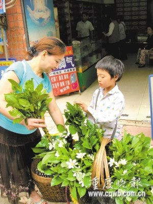 10點,小鳳迎來第三筆業務:一位中年婦女掏10元錢買走5把梔子花。小鳳緊緊攥著錢,激動地跳起來——這筆“生意”太輕松了,不僅銷量大,買主還沒討價還價。“我曉得這娃娃沒錢讀書來賣花的事,就是想照顧她。”買花的中年婦女說。