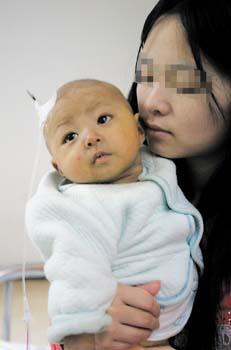 昨日,兒童醫院,小周舟和母親在一起記者 孫須 攝