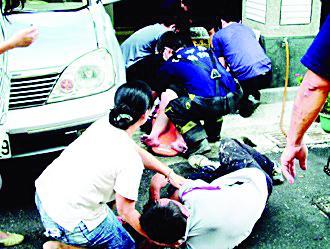 臺中縣烏日鄉王姓婦人跳樓輕生,壓傷在樓下用手接的丈夫