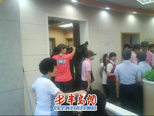 記者恰好在易初蓮花附近,接到小王的電話之后迅速趕到了肯德基。這時候,肯德基店內(nèi)的員工拿出了不少垃圾袋,將衛(wèi)生間的門擋了起來,同時店面經(jīng)理表示已經(jīng)撥打了110。