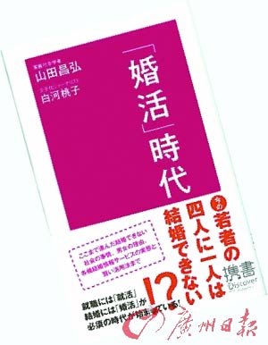 《“婚活”時代》由社會學家山田昌弘和記者白河桃子合著,去年初一上市即售出17萬冊。這兩名作者把日語“婚姻”和“活動”兩詞合成“婚活”一詞,意為一切與結婚相關的活動。他們鼓勵未婚青年主動出擊,因為坐等意中人出現遠遠不夠。