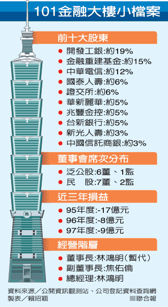 臺北101股東結構中,泛中信集團包括開發金、中國信托銀行與中國人壽等三家公司,合計持有約二成五股權,中壽與中信銀是否跟進釋股有待觀察。