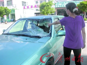 談及事發情景,小轎車的主人曾女士仍心有余悸。當晚10時10分許,曾女士把小轎車停在店門前,自己像往常一樣坐在門口乘涼,忽然“砰”的一聲巨響,一名男子 重重摔到小轎車上!八念^砸在車前蓋上,腳把擋風玻璃砸爛了。”