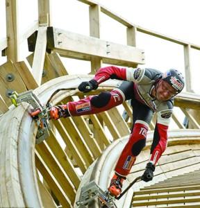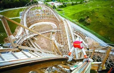 別看Dirk在過山車上 “風(fēng)馳電掣”,十分風(fēng)光,其實(shí)他冒著巨大的風(fēng)險(xiǎn)。當(dāng)Dirk完成滑行后,他才長(zhǎng)舒一口氣。由于這次滑行的過山車是全木制的,都由釘子固定,在高速滑行的過程中,任何一個(gè)突出的釘子都會(huì)使他喪命。不過Dirk絲毫不介意所承擔(dān)的風(fēng)險(xiǎn),對(duì)他來說,這才是冒險(xiǎn)的樂趣所在。