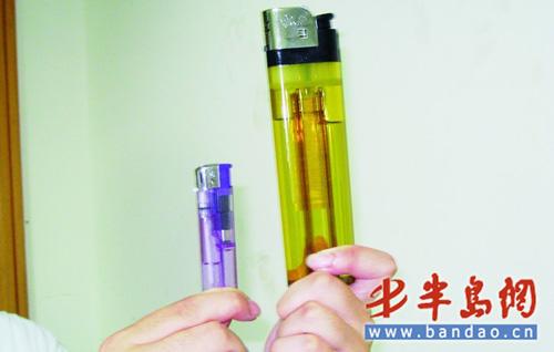 “這個打火機能用一年,拿在手里還特別拉風。”賣這種打火機的一個小伙子告訴記者,這種打火機最近剛在青島出現,賣得很火。“這么大的打火機,要是不小心爆炸了,還不得像個炸彈似的。”在一旁圍觀的張先生表示出擔憂。記者發現,這些大容量打火機的機身上都找不到生產廠商。