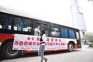 “83年后素質美女,你媽喊你去心雨園婚介中心征婚”!昨日上午,南京鼓樓廣場前,一輛公交車帶著兩側的“雷人”橫幅,緩緩駛過,吸引了眾多市民觀看。