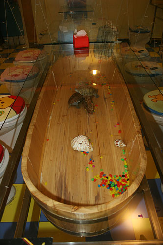 便便滿屋飯?zhí)糜幸晃幻琅习迥,每天都很開心的樣子。在談到為什么會開這么一家衛(wèi)浴主題的餐館時,店主李女士說:“原來看到國外有人做過類似的主題餐廳,我很喜歡,就開了一家。我們的餐具都是專門定制的,非常特殊,充滿童趣,F(xiàn)在我們的顧客大部分是10到35歲的年輕人,目的是讓他們能在這里解壓、釋放。”