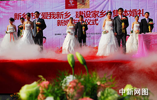 中新網(wǎng)新鄉(xiāng)11月22日 (記者 史寶銀 向明超)11月22日上午,由新鄉(xiāng)市文明辦、共青團(tuán)新鄉(xiāng)市委、新鄉(xiāng)市婦女聯(lián)合共同主辦的“愛(ài)我新鄉(xiāng)、建設(shè)家鄉(xiāng)”集體婚禮在新鄉(xiāng)市人民公園東門廣場(chǎng)隆重舉行。慶典儀式上,新郎新娘紛紛捐出了自己的禮金,購(gòu)買了5000枚石榴花圖案的新鄉(xiāng)市徽向市民免費(fèi)發(fā)放,同時(shí)倡議市民熱愛(ài)家鄉(xiāng),建設(shè)家鄉(xiāng)。