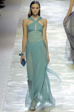 輕舞的薄紗能滿足所有對夢幻的向往,胸前的交叉設計和寬闊的釘珠腰飾是兩大重點,前者帶來令人遐想的性感,后者是體現典雅氣質的精致。