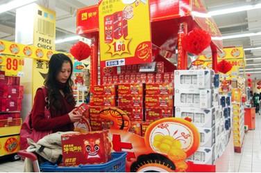 2月6日下午,記者來到雙井的一家超市,這里的蒙牛“牛運金虎”牛奶的銷售區(qū)也是人頭攢動,一位女士和老公在在貨架前仔細(xì)挑選。據(jù)這位女士介紹,她買牛奶是想送人,所以對產(chǎn)品品質(zhì)和包裝要求的比較高。當(dāng)他們看到蒙牛牛奶上這只喜氣洋洋的小金虎,覺得特別可愛也很喜慶,大紅的禮盒包裝、包裝上小老虎頭上的“牛”字和“牛運當(dāng)頭”的寓意甚合他們的心意。