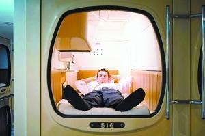 入住的客人一旦踏進旅館大門,工作人員便會遞上一雙消毒拖鞋,付錢后,住客會得到一把衣柜鑰匙,將隨身攜帶的行李鎖進衣柜!澳z囊”分布在走廊兩側,上下兩層疊落,有點像中國的火車臥鋪車廂。