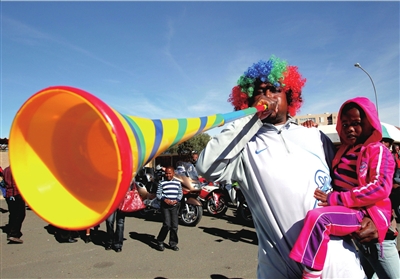 在本屆世界杯上,一種叫做“喔喔祖拉”的非洲傳統(tǒng)喇叭被全世界球迷所熟知,這個東西發(fā)出的類似于蜜蜂叫的響聲也引起了爭議。日前,“喔喔祖拉”已開始在淘寶網(wǎng)上熱賣。對于此物應不應該出現(xiàn)在本地綠茵場觀眾席上,北京國安的球迷反應不一。