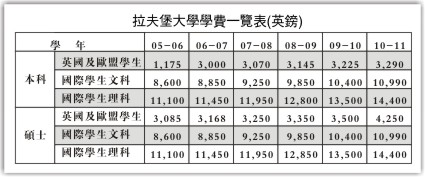 諾丁漢大學位于英國中部。由于近幾年與中國多所院校合作辦學,中國留學生成批涌進這所大學;同時該校還在浙江寧波設立分校,有條件的大三學生會到英國讀書一年。記者聯系到該校的碩士研究生陳兵同學,他詳細列出該校歷年來的收費標準。今年的學費比去年略有上漲,但增長率與往年持平。他覺得這個上調的價格是合理的,中國來的同學都能接受。