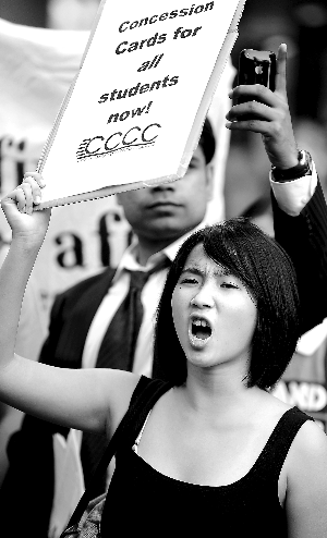 9月2日,來自中國、印度等10多個國家的近千名外國留學生聚集在澳大利亞悉尼科技大學門前,開始了他們為爭取合法權益而舉行的大游行。游行的直接原因是交通優惠卡問題———在留學生最多的新南威爾士州和維多利亞州,只有澳大利亞本地學生才能獲得交通優惠卡,享受乘坐汽車、火車5折的待遇。但是,留學生們的不滿并不是小小的優惠卡這么簡單。