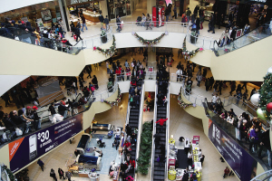 皇后購物中心(Queens Center Mall)27日凌晨就開門營業,更是不惜血本打折,其中潘尼公司(JCPenny)原價150多元的名牌男士夾克,“黑色星期五”開門價不到40元,還有很多10元以下的小家電。梅西百貨商品除了全部店面打折,有的店面還發放折扣券。眾多民眾為了搶購廉價商品,大排長隊。27日早上7點左右,整個皇后購物中心的交通明顯擁擠起來,光是停車場內就已經排了近300多人,為了避免堵塞,保安們不僅維持秩序,還控制停車場內的車流量。