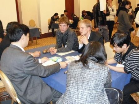中新網1月26日電 據《日本新華僑報》報道,為了增進在縣內企業工作的外國留學生與企業之間的交流,協助尚未落實工作崗位的留學生找到合適的工作,1月24日,日本大分縣在高砂町的大分全日空賓館內舉辦了第二屆“企業與留學生交流博覽會”。展會吸引了大約180名在縣內各地就讀的留學生與26家縣內企業、團體前來參加。今年的博覽會由大分縣各高校組織的“大分區域留學生交流推進協會”等與學生聯系緊密的組織負責主辦。