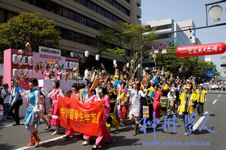 作為最能代表福岡博多的節(jié)日之一,也是西日本最有名的全民歡樂節(jié)之一,“博多打鼓節(jié)”起于平安時(shí)代,由一種稱為“松囃子”的民間藝術(shù)演變而來,最早的時(shí)候,它是向當(dāng)?shù)仡I(lǐng)主祝賀新年的儀式,如今已經(jīng)演變成為福岡地區(qū)傳統(tǒng)的節(jié)日,市民組織各式各樣的慶祝活動(dòng)。2010年度的博多打鼓節(jié),中國(guó)留學(xué)生報(bào)名踴躍,積極參與,“中國(guó)留學(xué)生方隊(duì)”列于壓軸位置,在各個(gè)留學(xué)生隊(duì)伍中,“中國(guó)留學(xué)生方隊(duì)”參加人數(shù)最多,展示了中國(guó)傳統(tǒng)的少數(shù)民族服飾服飾和舞獅表演,亮點(diǎn)頻現(xiàn)。